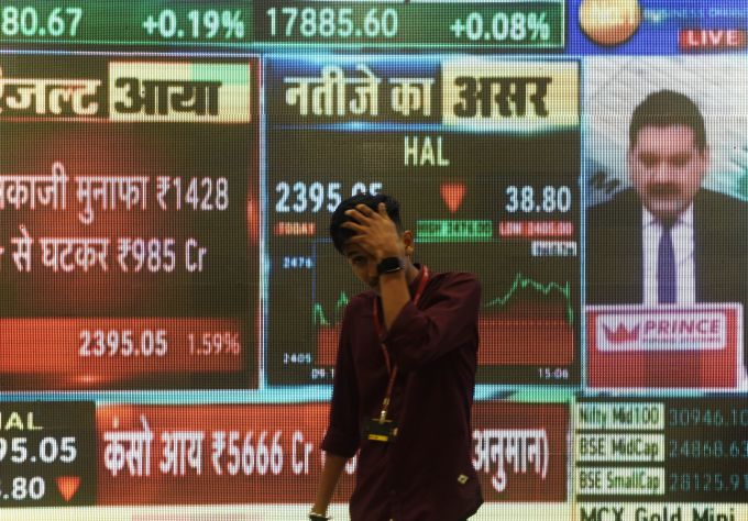 인도 뭄바이증권거래소(BSE)에 설치된 TV 스크린 [사진=블룸버그통신]
