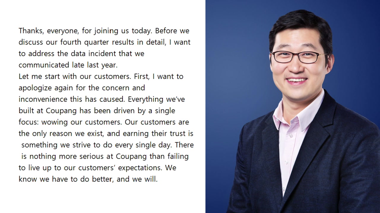 [김범석 / 쿠팡Inc 의장 : 고객은 쿠팡이 존재하는 이유이며, 고객의 신뢰를 얻기 위해 매일 최선을 다하고 있습니다.]