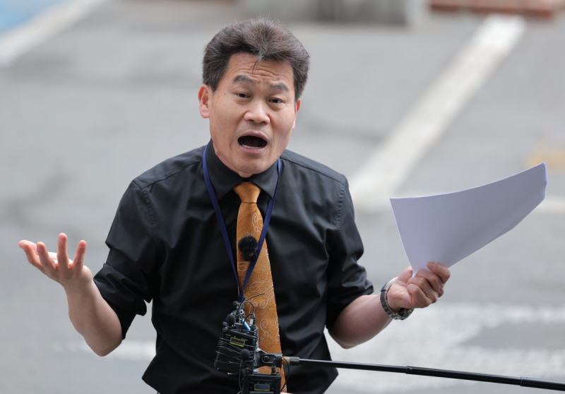 전 한국사 강사 전한길씨가 27일 동작구 서울경찰청 형사기동대에 피의자 신분으로 조사를 받기 위해 들어가며 발언하고 있다. 연합뉴스 |