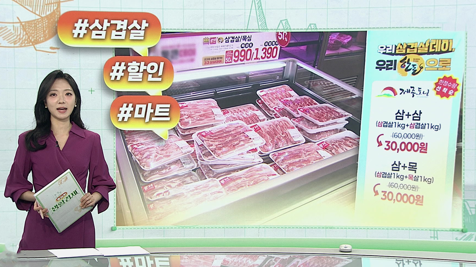 삼겹살 데이를 맞아 곳곳에서는 돼지고기 할인 행사가 펼쳐지고 있습니다.