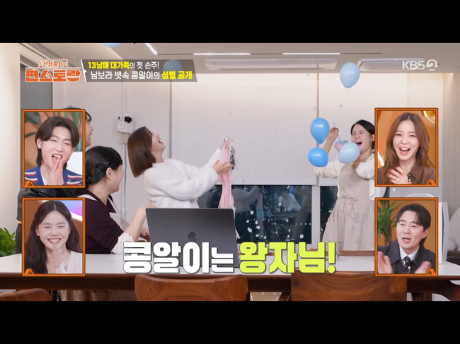 이날 남보라의 동생들은 ‘보라네 첫 조카! 첫 손주! 콩알이의 성별은?’이라는 현수막을 준비했고, 남보라는 “성별 공개도 ‘편스토랑’에서 처음 한다”며 이른바 ‘젠더 리빌 파티’를 진행했다.