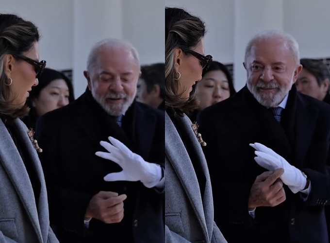 이 영상에는 룰라 대통령이 지난 23일 오전 국립서울현충원에 방문했을 당시 참배 전 장갑을 착용하다가 새끼손가락이 없는 왼손 장갑을 보고 놀라는 모습이 담겼습니다. 왼쪽 장갑에 새끼손가락이 없는 것을 확인한 룰라 대통령은 미소 지으며 옆에 있던 아내 호잔젤라 다 시우바 여사에게 이를 보여줍니다.