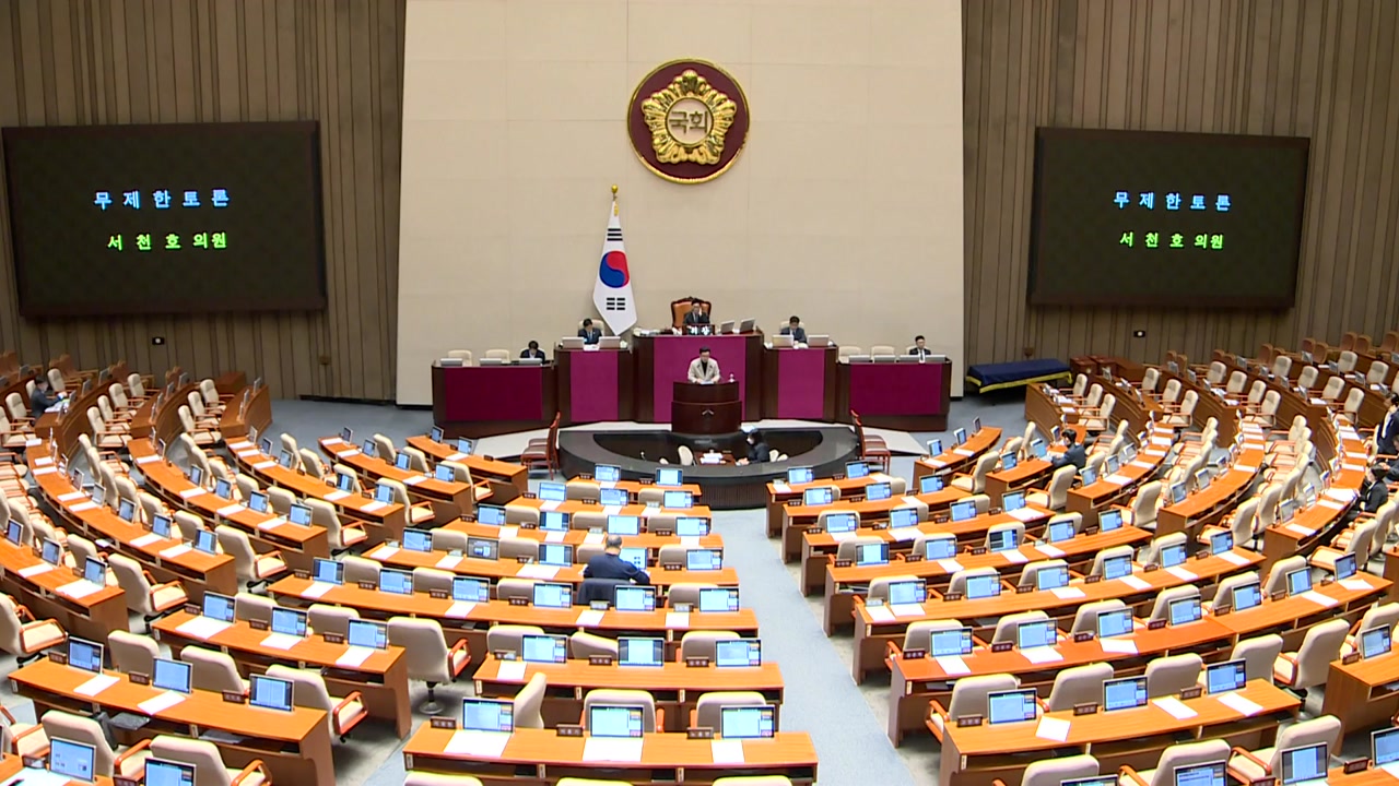지금은 국민의힘 서천호 의원이 2시간 반 넘게 반대 토론을 진행 중입니다.