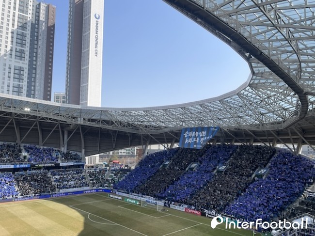 킥오프 직전 장관이 펼쳐졌다. 인천 팬들은 3면을 가득 채우는 '파랑검정' 카드 섹션을 펼쳤다. 서울 팬들도 구단색을 상징하는 검은색과 빨간색으로 구성된 카드 섹션으로 응수했다. 이어서 양 팀 팬들이 응원가를 부르며 분위기를 끌어올렸다.