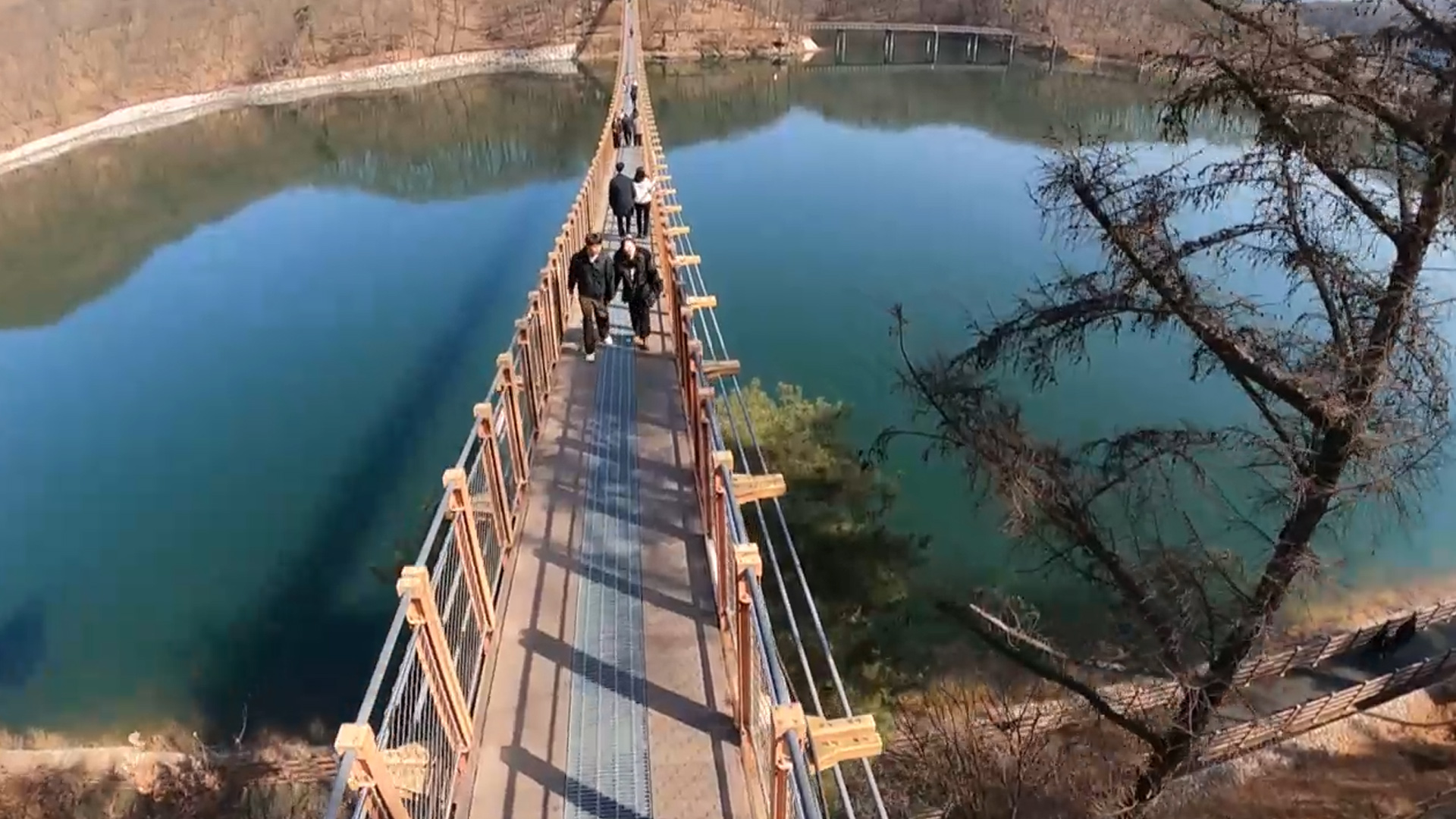 아무래도 다리가 흔들리다 보니 부모님 손을 꼭 잡고 조심스럽게 한 발 한 발 내딛는 아이들의 모습이 보이고요.