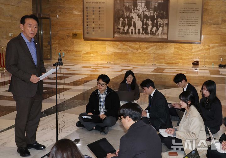 [서울=뉴시스] 조성봉 기자 = 김석기 국민의힘 의원이 지난 26일 오후 서울 여의도 국회 로텐더홀에서 기자회견을 열고, 대구와 부산 지역 출마설이 돌고 있는 한동훈 전 대표에게 '출마가 아닌 백의종군 할 것'을 요구하고 있다. 2026.02.26. suncho21@newsis.com |
