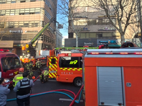 (서울=연합뉴스) 최원정 기자 = 토요일인 28일 오후 4시 15분께 서울 서초구 서초역 인근 7층짜리 상가 건물 3층에서 불이 났다.