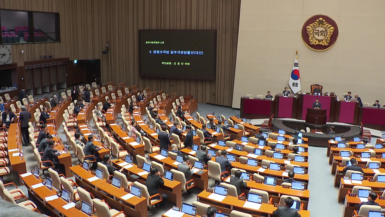 어제저녁 재판소원법이 통과된 이후, 사법 3법의 마지막 관문, 대법관증원법이 본회의에 상정됐습니다.