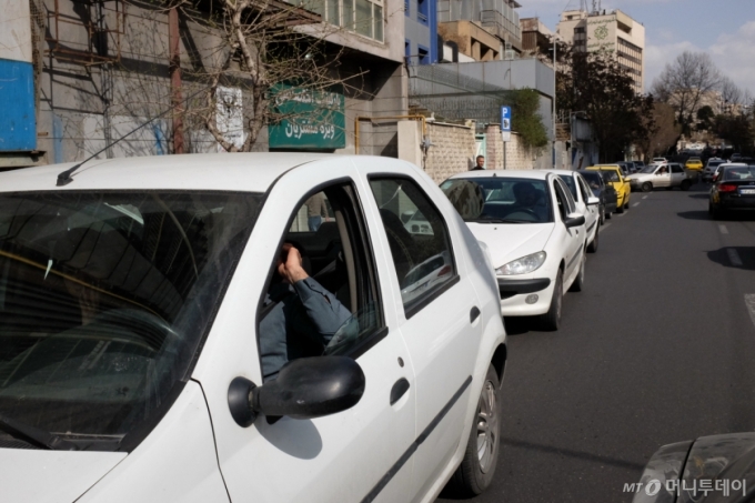 [테헤란=AP/뉴시스] 28일(현지 시간) 이란 수도 테헤란에서 미국과 이스라엘의 공격으로 피란길에 나선 차량이 주유소 밖에 길게 줄지어 서 있다. 2026.02.28. /사진=민경찬 |
