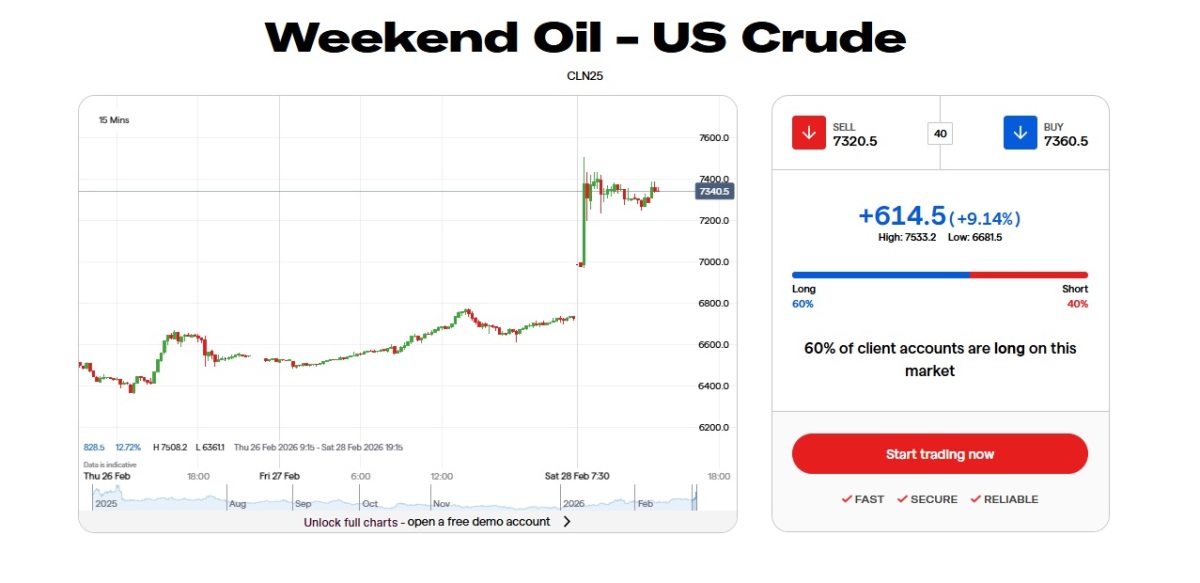 뉴욕상업거래소의 WTI 선물 거래는 주말 동안 쉬었다가 현지시간 일요일(3월1일) 저녁 재개된다.