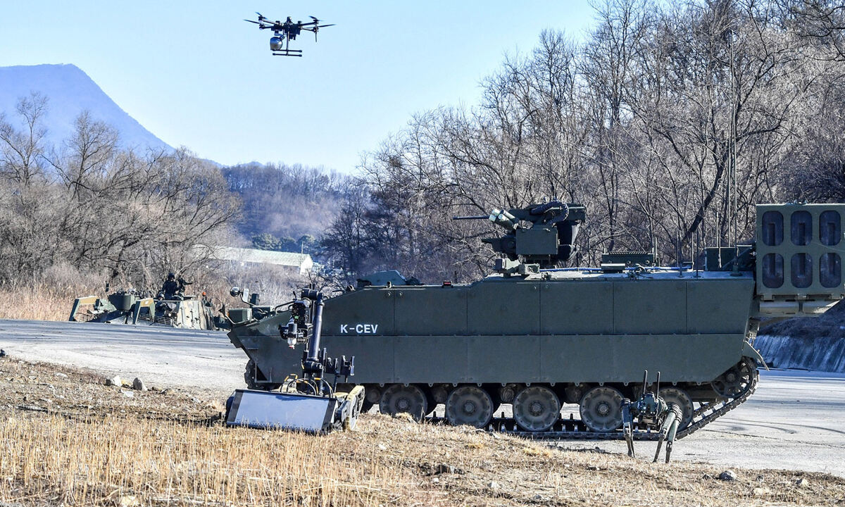 육군은 지난달 26일 양평종합훈련장에서 AI 기반 유·무인 복합 K-CEV 첫 실전 훈련 현장을 공개했다.