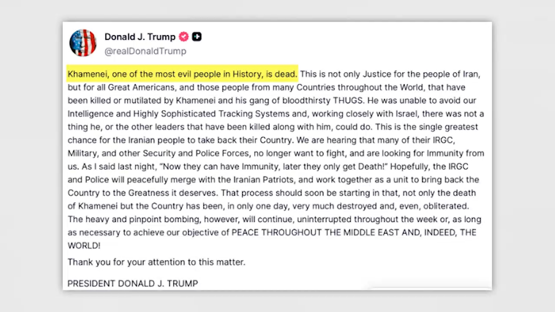 트럼프 대통령은 소셜미디어를 통해 "역사상 가장 사악한 인물 중 한 명인 하메네이가 사망했다"며 "이란 국민뿐 아니라 모든 위대한 미국인들, 전 세계 여러 나라 사람을 위한 정의"라고 밝혔습니다.