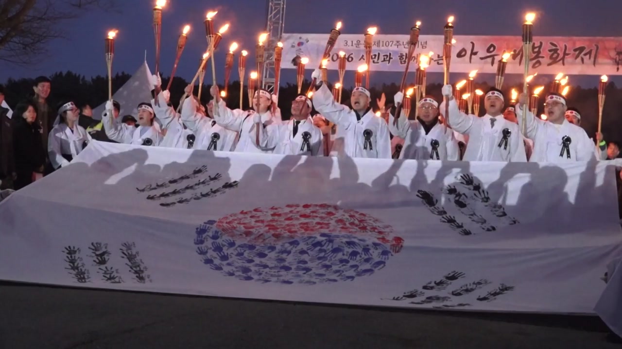 이번 행사에는 독립 유공자 유족과 시민 등 3천여 명이 참가했고, 시민들은 태극기와 횃불을 들고 1.4km 구간을 행진하며 만세운동을 재현했습니다.