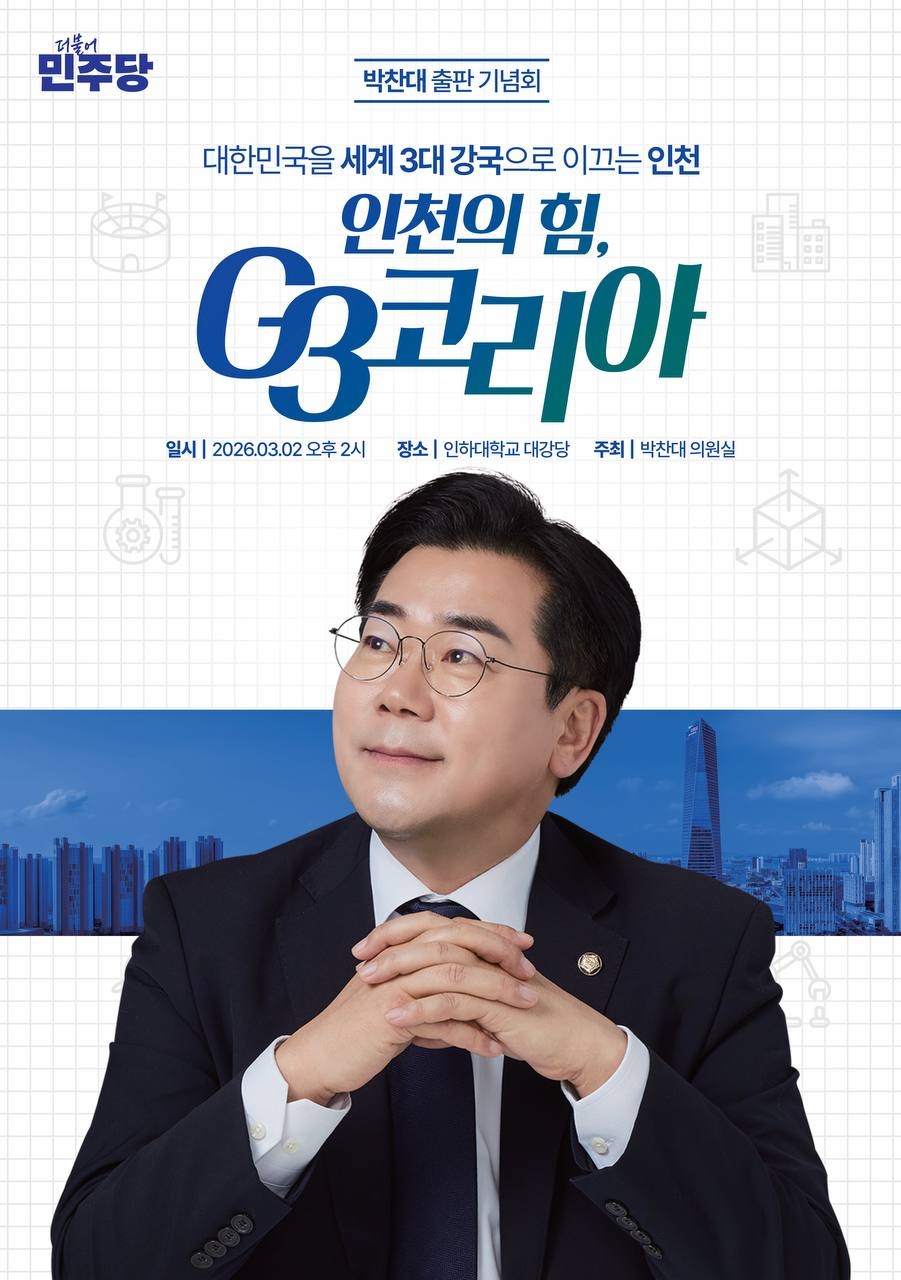 박 의원은 오는 2일 오후 2시 인천 미추홀구 인하대학교 본관 대강강에서 ‘인천의 힘, G3 코리아’ 출판기념회를 개최한다고 1일 밝혔다.