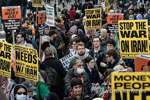 이란 공습을 비판하는 시위는 뉴욕에서도 벌어졌다. 시위대는 '이란에서 손 떼라'는 문구가 담긴 피켓을 들고 타임스스퀘어를 행진했다.