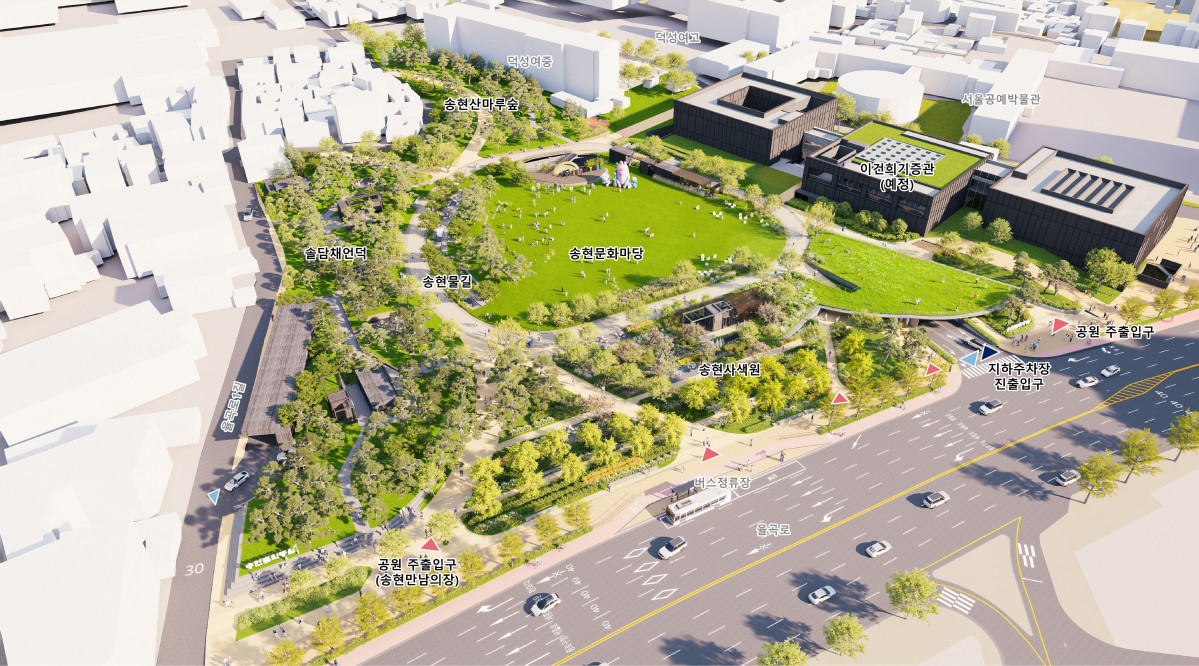 공원 곳곳에는 송현의 역사성을 담은 앉음 벽과 안내 사이니지를 설치해 공간의 기억을 체험형 콘텐츠로 구현할 계획이다.