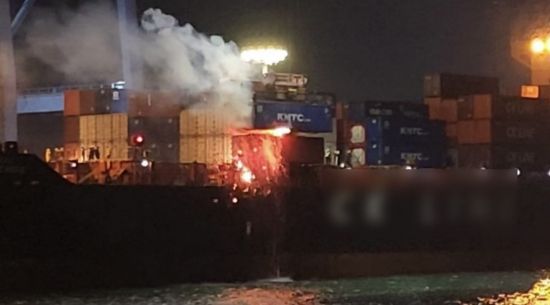 전남 해상에서 2만t급 대형 컨테이너선에 불이 났으나 해경의 신속한 조치로 대형 참사를 막았다.