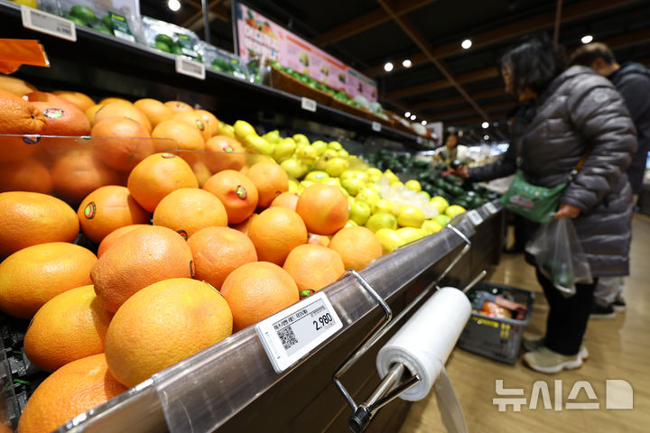 [서울=뉴시스] 최진석 기자 = 미국과 이스라엘이 이란에 대한 공습 단행 이후 중동지역 불안이 확산되고 있는 1일 서울 시내의 한 마트에 이스라엘 산 레드 자몽 등의 수입과일이 진열되어 있다. 2026.03.01. myjs@newsis.com