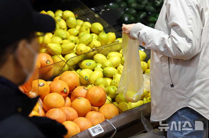 [서울=뉴시스] 최진석 기자 = 미국과 이스라엘이 이란에 대한 공습 단행 이후 중동지역 불안이 확산되고 있는 1일 서울 시내의 한 마트에 수입과일이 진열되어 있다. 2026.03.01. myjs@newsis.com