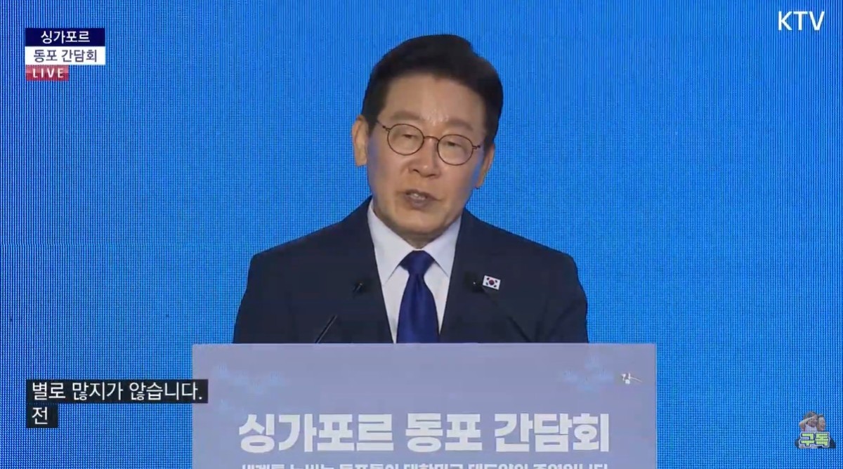 이 대통령은 이날 저녁 싱가포르 리츠칼튼 호텔 1층 그랜드볼룸에서 열린 동포간담회에 참석해 이같이 말했다.