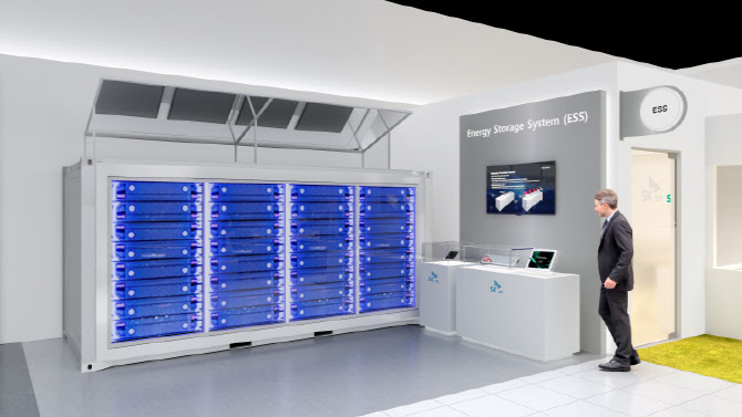 SK온 인터배터리 2026 전시관 내 에너지저장장치(ESS) 제품.(사진=SK온)