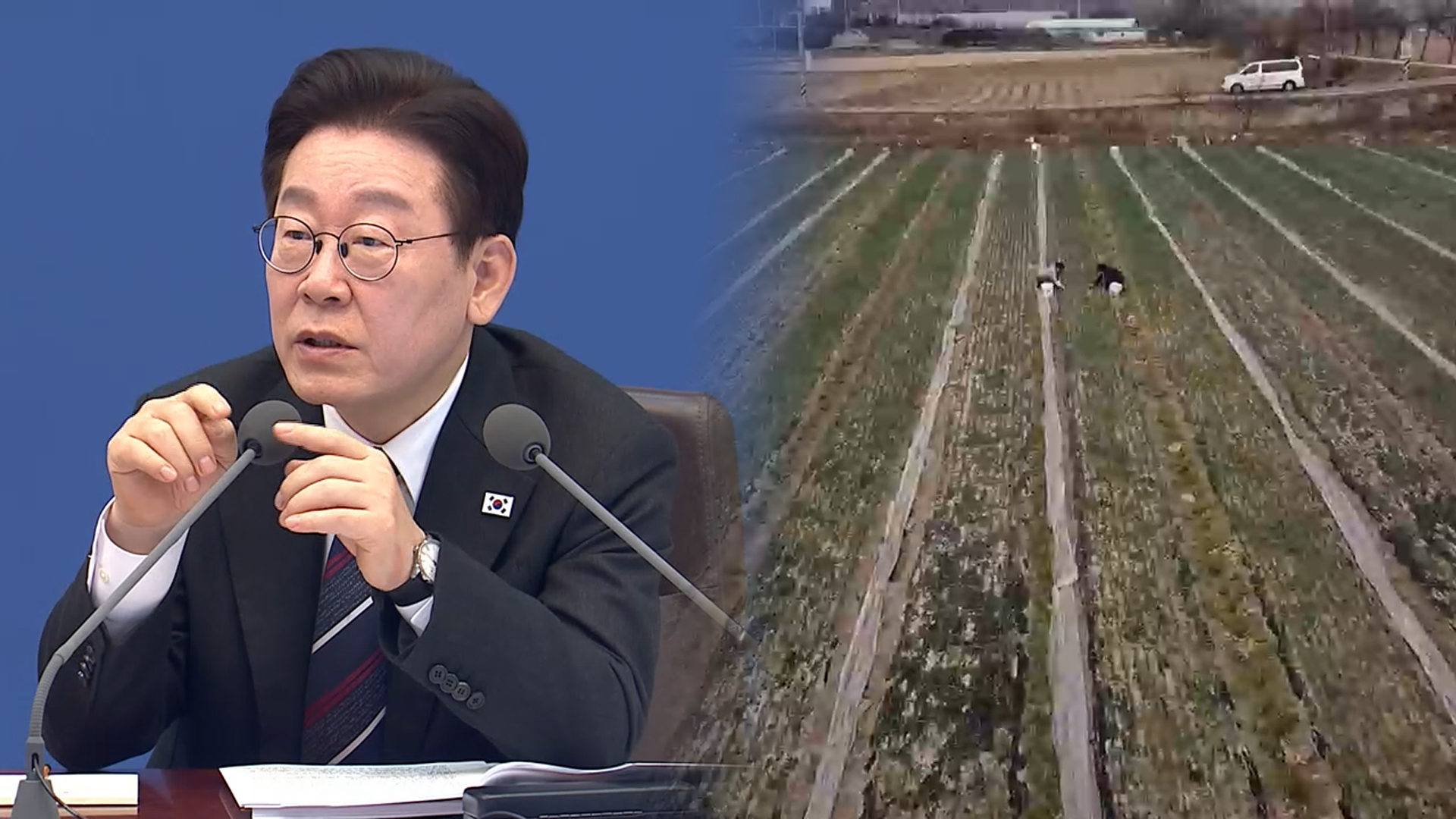 <이재명/ 대통령> "우리나라 농지 관리가 너무 엉망이잖아요.투기 대상이 되어버렸잖아요 어느 날. 경자유전 원칙이 헌법에 써 있죠? 필요하면 인력을 대규모로 조직을 하든지 해서 전수조사하고, 농사 짓는다고 사놓고 방치한 건 강제 매각 명령…"