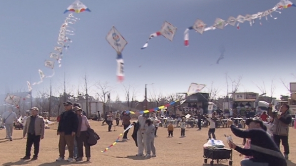 시민들은 완연한 봄 하늘에 연을 띄우며 즐거운 시간을 만끽했습니다.
