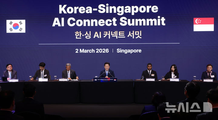 이 대통령은 이날 양국의 'AI 커넥트 서밋'에 참석해 축사를 통해 "지금은 AI가 주도하는 거대한 문명사적 전환의 중간에 서 있다"며 "이러한 변화의 파고 속에 세계적 수준의 AI 역량을 갖춘 한국과 싱가포르가 손을 맞잡는 것은 필연적인 일"이라고 말했다.