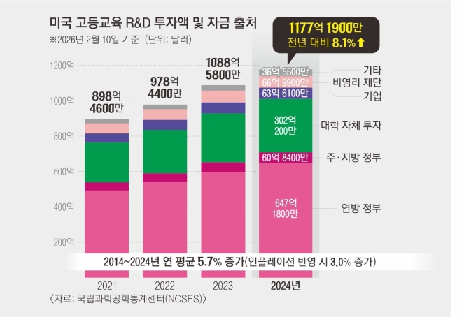 미국 고등교육 R&D 투자액 및 자금 출처