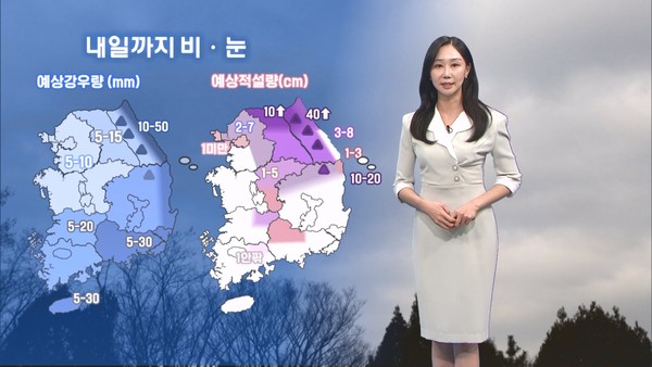 비는 강원동해안에 최대 50mm, 경남과 제주에는 최대 30mm, 그 밖의 지역은 5-20mm 사이로 오겠고요.
