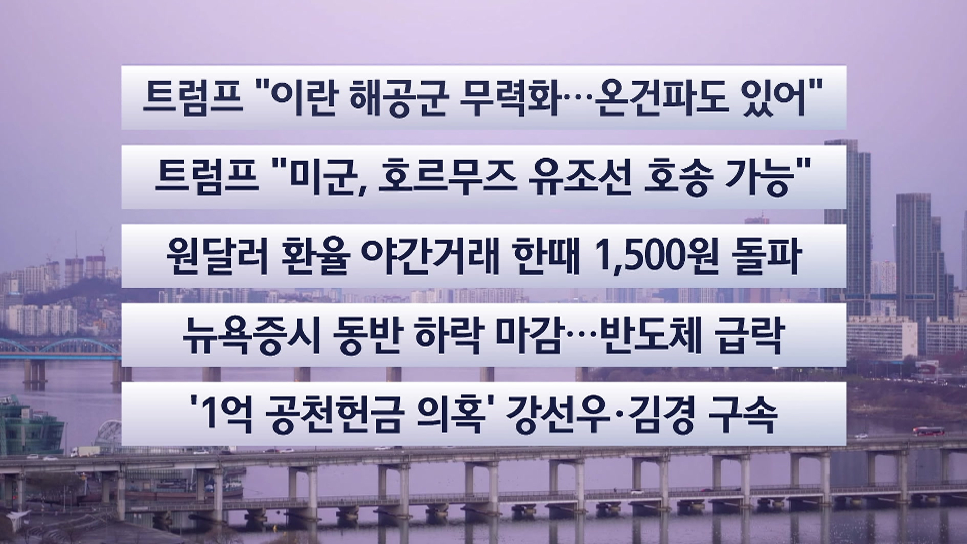 미국·이스라엘과 이란의 군사충돌이 이어지는 가운데, 트럼프 미국 대통령이 이란 해·공군이 무력화됐다고 밝혔습니다.