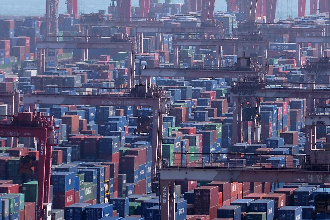 부산항 신선대부두에 컨테이너가 가득하다. [연합] |