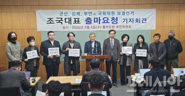 ‘조국 대표 국회의원 재선거 출마요청 추진위원회’는 4일 전북도의회에서 기자회견을 열고 “군산에는 부패와 무능, 안일의 카르텔을 깨고 지역과 대한민국을 혁신할 새로운 정치 리더가 필요하다”며 조 대표의 보궐선거 출마를 요청했다.