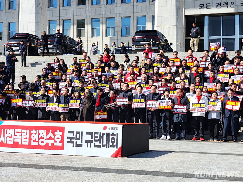4일 정치권에 따르면 국민의힘은 더불어민주당이 통과시킨 사법 3법(법 왜곡죄·4심제·대법관 증원)에 대한 본격적인 장외 여론전에 돌입했다. 장동혁 국민의힘 대표는 전날 국회에서 열린 ‘사법독립 헌정수호를 위한 대국민 호소 국민대장정 규탄대회’ 출정식에서 “당원들이 지금 국민의힘에 가장 바라는 것은 당대표를 중심으로 뭉쳐 제대로 싸우는 것”이라고 말했다.
