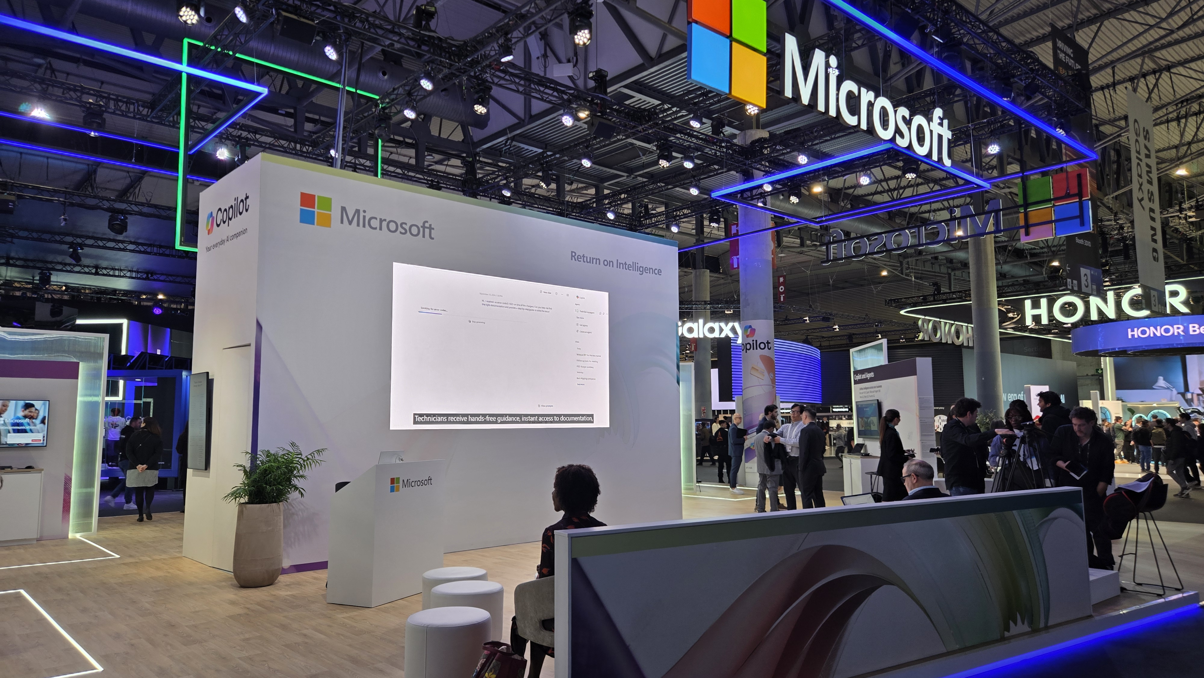 현장 부스에서 가장 눈에 띄는 부분은 통신 소프트웨어 기업 암독스(Amdocs)와의 협업 시연이다. 마이크로소프트의 애저 오픈AI, 깃허브 코파일럿 등 AI 기술과 암독스의 에이전틱 운영체제(aOS)를 결합한 솔루션이 전시됐다.