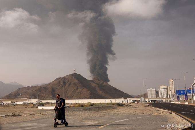 3일(현지시간) 이란의 드론 공격을 받은 아랍에미리트(UAE)의 푸자이라 원유 시설 인근에서 검은 연기가 피어오르고 있다. ⓒ 로이터=뉴스1 Copyright (C) 뉴스1. All rights reserved. 무단 전재 및 재배포, AI학습 이용 금지. /사진=(푸자이라 로이터=뉴스1) |