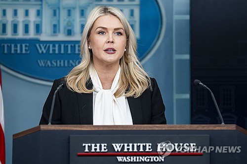 브리핑하는 레빗 대변인 |