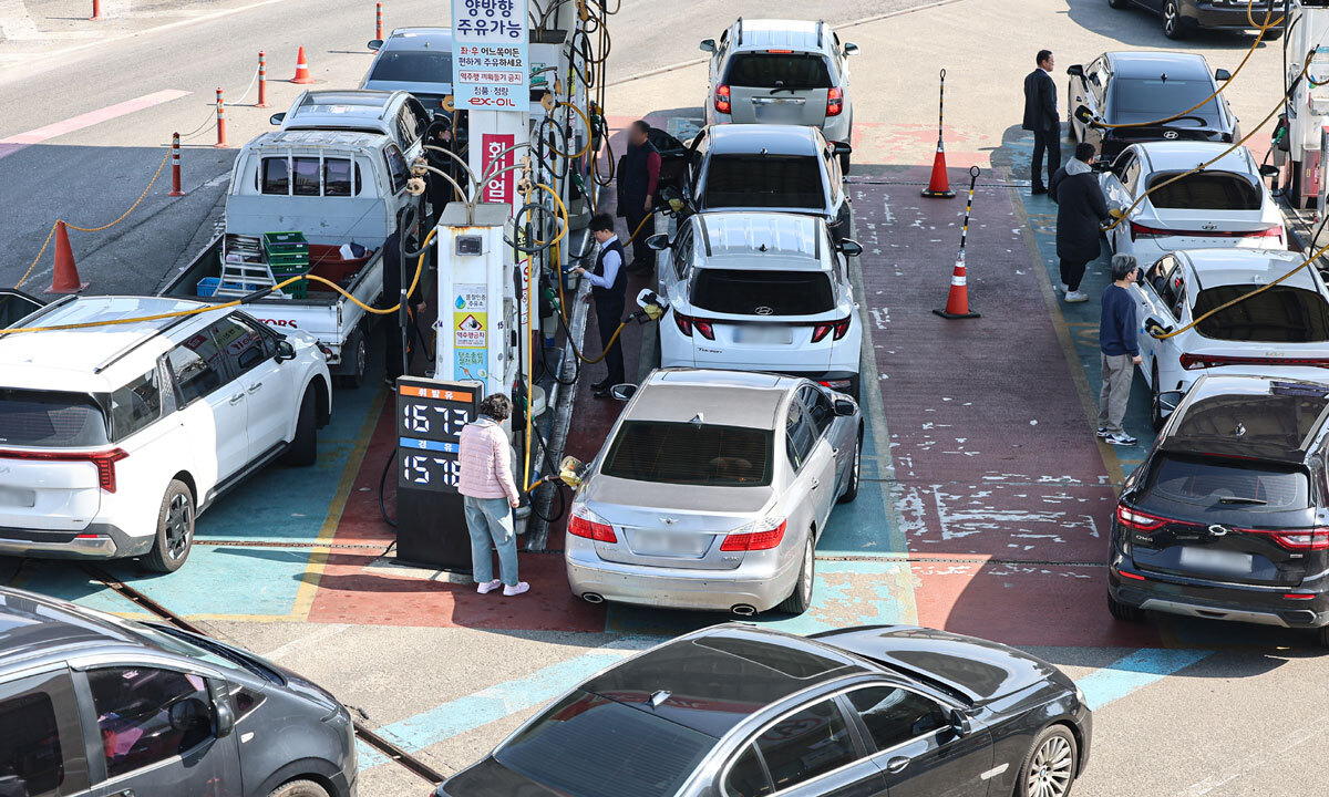 미국과 이란 전쟁 여파로 국제 유가가 상승하고 있는 4일 서울 서초구 경부고속도록 만남의광장 주유소에서 시민들이 주유를 하고 있다. 뉴스1 |