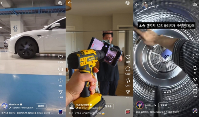 테크 인플루언서들의 갤럭시 S26 슈퍼스테디 실험 영상./사진=SNS 갈무리 |