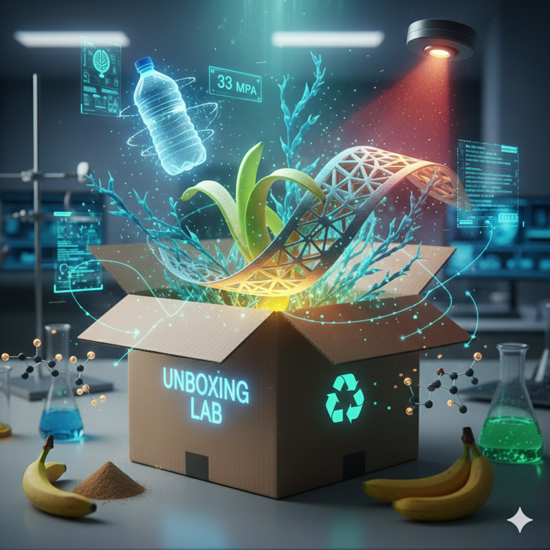 미역이나 다시마에서 뽑아낸 '알지네이트'와 게·새우 껍질 성분인 '키토산 나노 물질'을 섞어 바나나 입자들을 끈끈하게 이어주는 튼튼한 기초판을 설계했다. 여기에 온도에 따라 배열이 바뀌는 특수 고무 층을 겹겹이 쌓아 올려, 열을 받으면 마법처럼 형태가 변하는 기능을 추가했다.