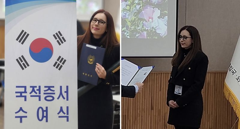 에바 포피엘이 경기 양주 출입국 사무소에서 열린 국적 수여식에 참석해 한국 국적증서를 수여받았다./사진=에바 포피엘 인스타그램 캡처 |