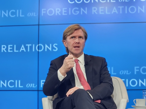 엘브리지 콜비 미국 국방부(전쟁부) 정책차관이 4일(현지시간) 워싱턴DC의 미국외교협회에서 발언하고 있다. 2026.3.5 [워싱턴=연합뉴스 제공] |