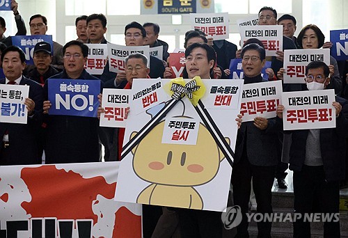 민주당에 대해서도 "과거에는 졸속 추진을 이유로 회의적 태도를 보이다가 최근에는 통합 무산으로 지역이 도태될 것처럼 주장하고 있다"며 "정치 일정에 따라 원칙이 달라지고 있다"고 비판했다.