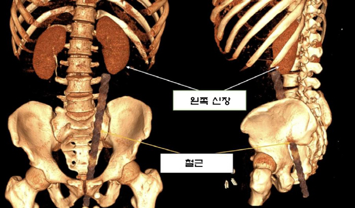 제거 수술 과정에서 의료진은 철근이 환자의 왼쪽 요추 늑골 부근에 위험하게 위치해 있음을 발견했다. 검사 결과, 환자는 직장에 3㎝ 길이의 타박상을 입었고, 방광벽에서 신장까지 이어지는 왼쪽 요관이 손상됐다.