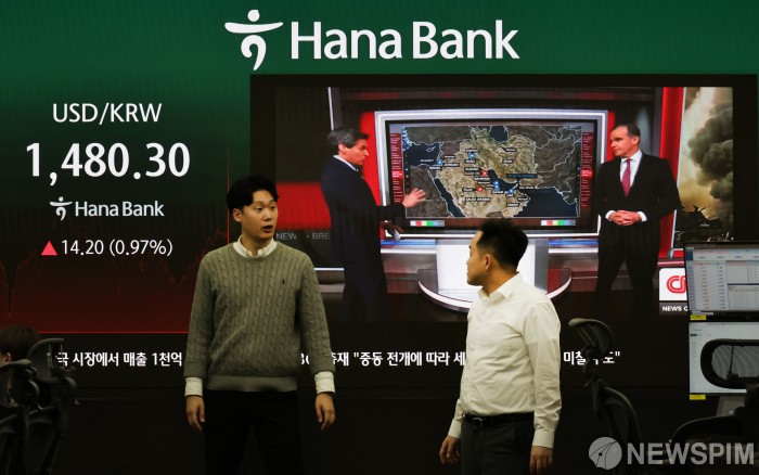[서울=뉴스핌] 양윤모 기자= 이란 사태 장기화 우려속 4일 오후 서울외환시장에서 달러/원 환율은 전장 대비 14.30원 상승한 1480.40원에 거래되는 가운데, 서울 중구 하나은행 을지로본점 딜링룸에서 직원들이 업무를 보고 있다. 2026.03.04 yym58@newspim.com |