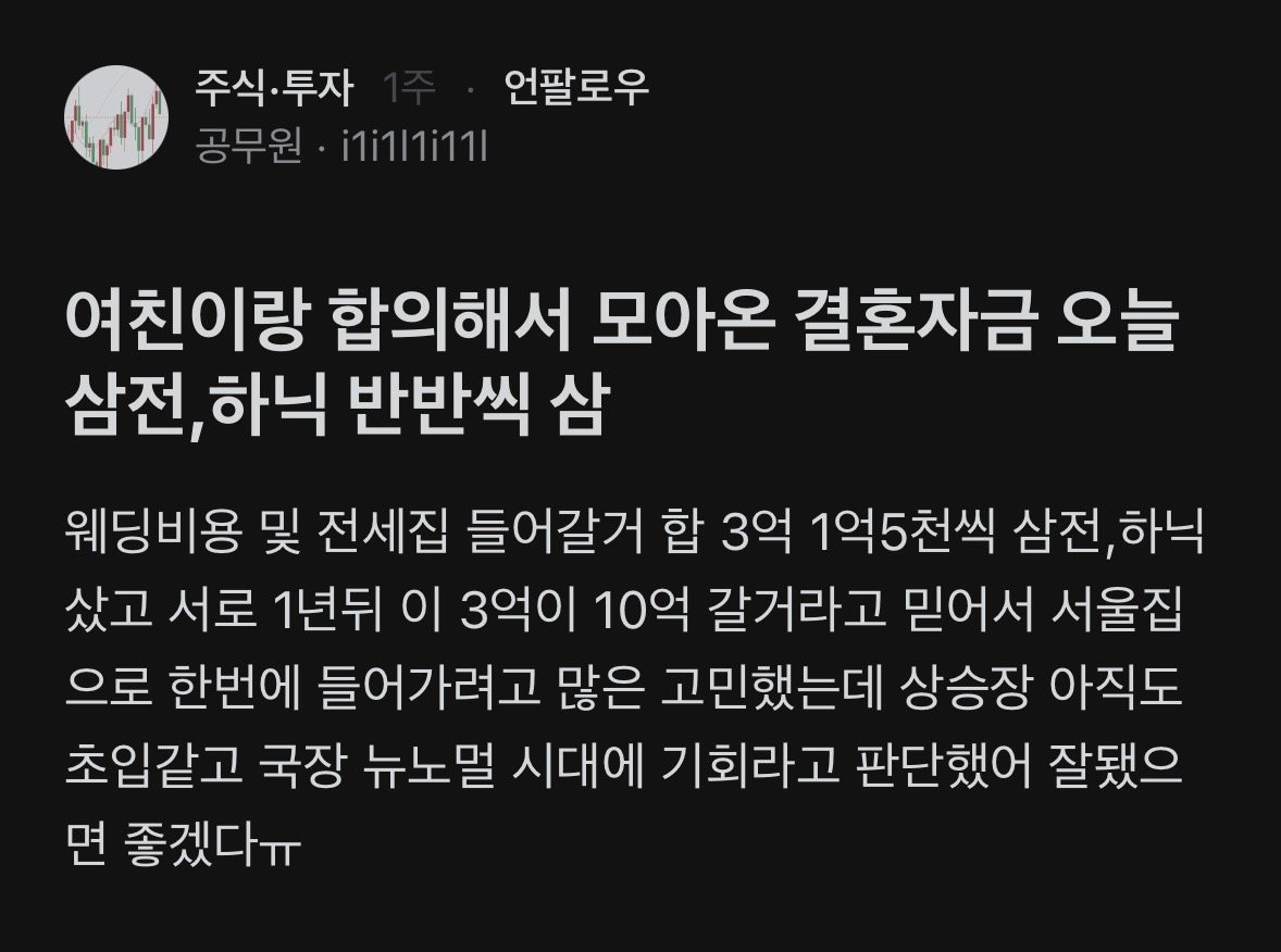 온라인에서는 투자 판단을 둘러싼 의견이 엇갈렸다. 일부 네티즌은 “결혼 자금이나 전세금처럼 용도가 정해진 돈을 변동성이 큰 주식에 몰아넣는 것은 투자가 아니라 도박”이라며 우려를 나타냈다.