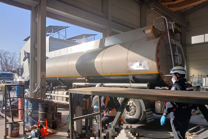 [칠곡=뉴시스] 탱크로리 용접 작업. (사진=경북소방본부 제공) 2026.03.05 photo@newsis.com *재판매 및 DB 금지 |