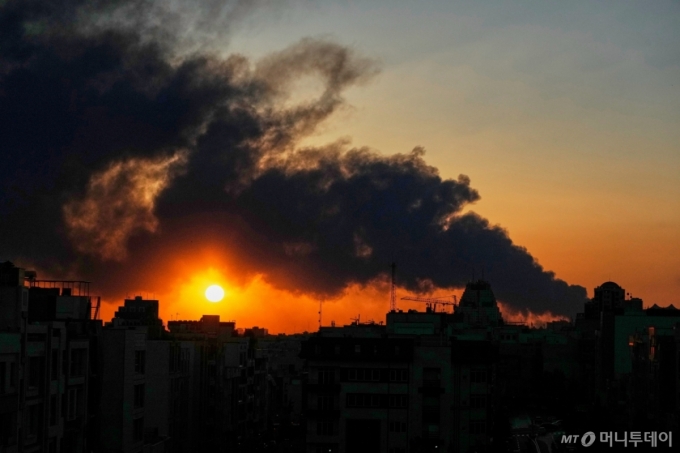 [테헤란=AP/뉴시스] 3일(현지 시간) 이란 테헤란에서 미국과 이스라엘의 군사 공격 이후 치솟는 연기 뒤로 해가 지고 있다. 2026.03.04. /사진=민경찬 |
