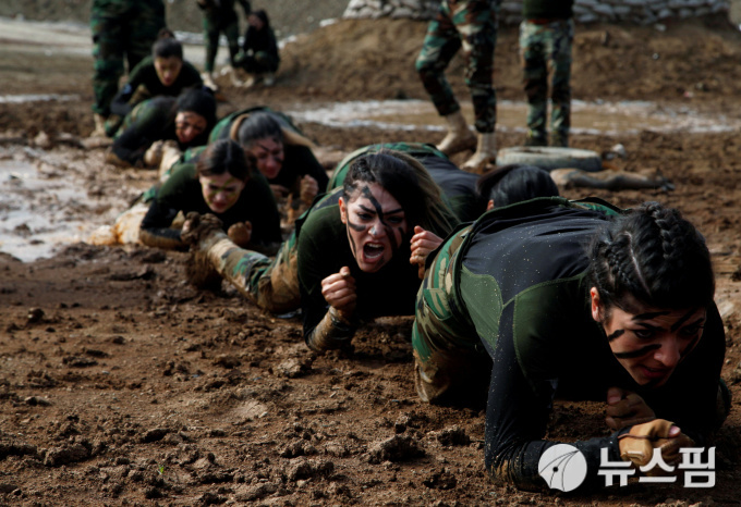 지난 2020년 2월 12일(현지시간) 이라크 아르빌에서 쿠르드족 부대인 페시메르가 특수부대원들이 군사훈련을 하고 있다. [사진=로이터 뉴스핌] |