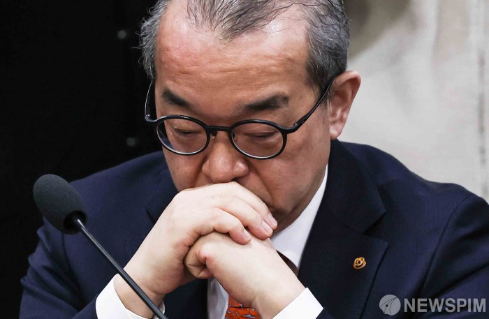 [서울=뉴스핌] 윤창빈 기자 = 정인섭 한화오션 사장이 5일 오전 서울 여의도 국회 의원회관에서 열린 중동 현안 관련 더불어민주당-재계 긴급 간담회에서 한정애 더불어민주당 정책위의장의 모두발언을 듣고 있다. 2026.03.05 pangbin@newspim.com |